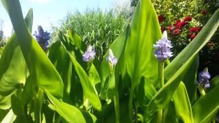 Planta flotante con sus raices en tierra. crecimiento muy rápido,en primavera hecha unas pequeñas flores de cinco pétalos amarillos de unos 2 a 3cm